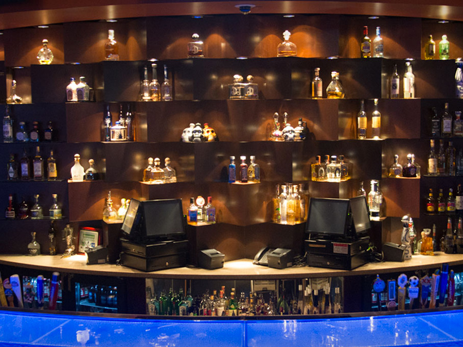 Choose from over 75 brands of tequila in a dimly lit, blue agave atmosphere.