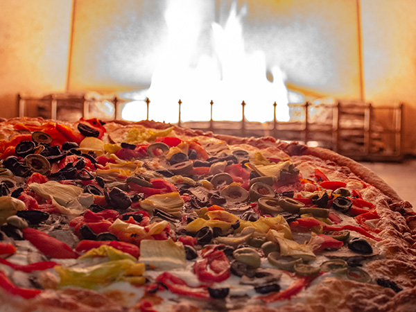 Our hand-tossed pizzas and handmade Calzones are made with homemade dough, sauces, and gourmet toppings. They are then baked in our authentic wood stone oven to a golden brown with a tender and chewy crust.